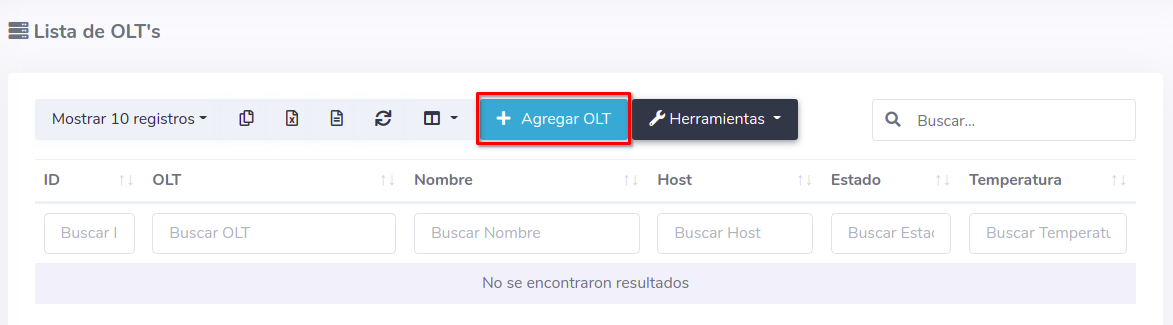 1 Inicie sesión en su cuenta de AdminOLT por medio del dominio que se le brindo en un principio y acceda al apartado, OLT