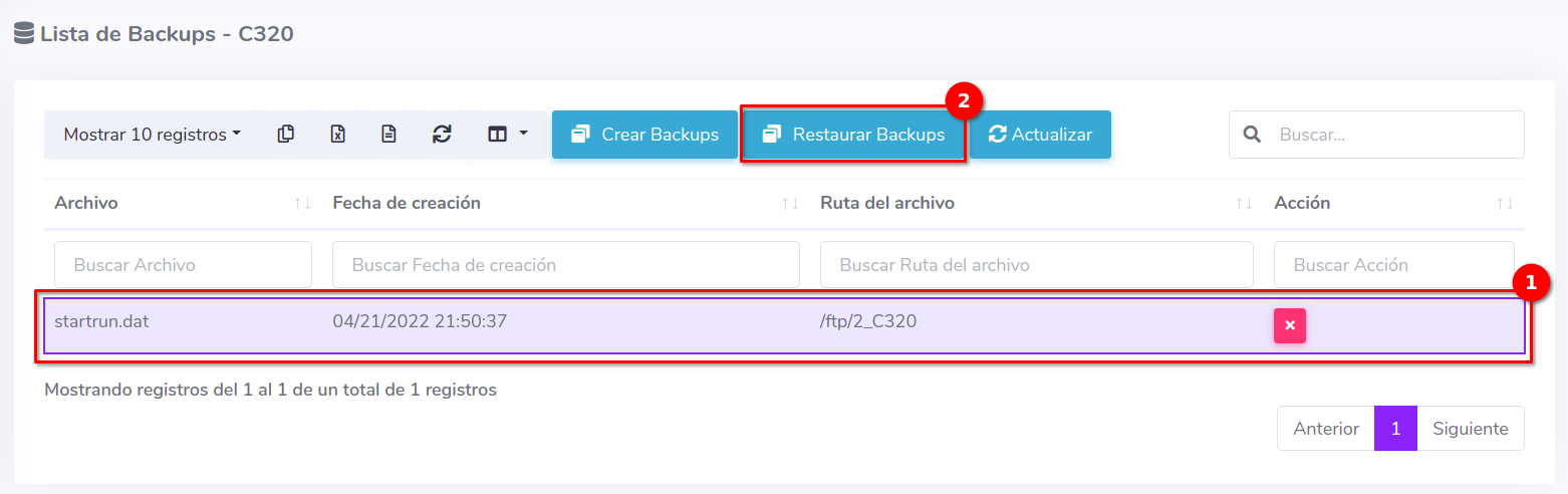 - Restaurar Backup: Restauración de respaldos hechos con anterioridad
