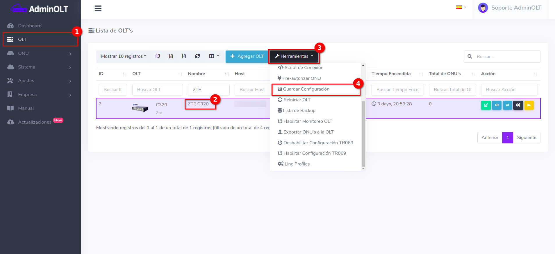 1 Seleccionar la OLT a trabajar