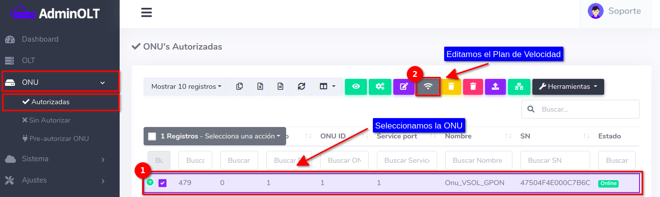 Cambiar de Plan de Velocidad a ONU Vsol