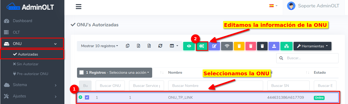 Dar click en el texto Editar en OLT que se encuentra en el botón con la leyenda Editar.