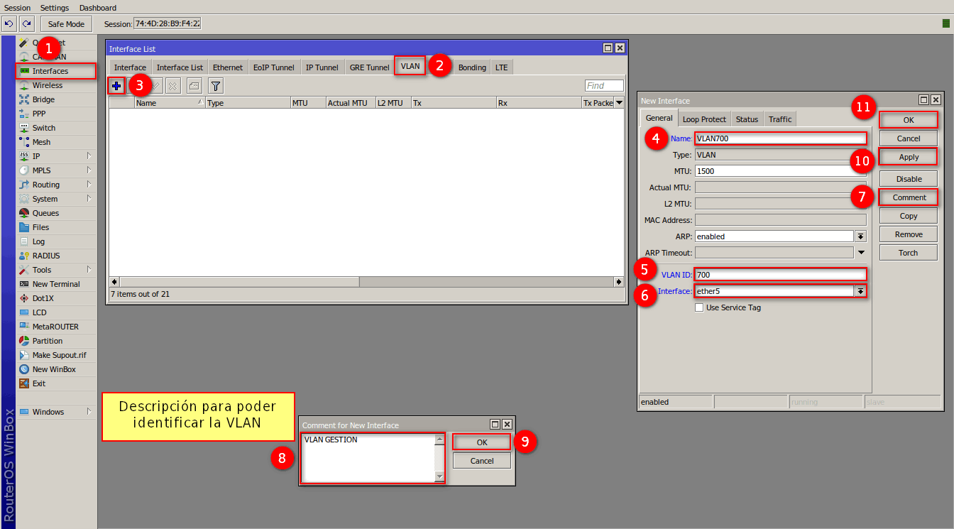 Para poder brindar el servicio debemos crear una VLAN para los clientes, para este ejemplo se creará la VLAN 600, con el Segmento de Red 192.168.60.0/24
