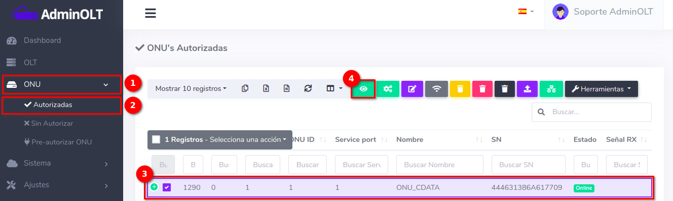 Al hacer esto, la configuración se borrará de la ONU y del sistema AdminOLT.