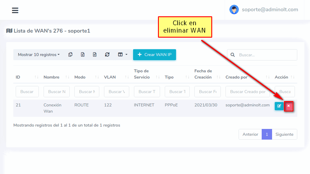 ¿Donde crear configuraciones WAN IP en AdminOLT?