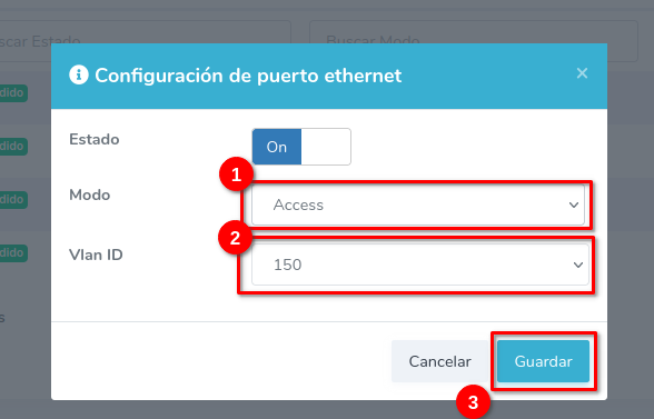 Access : Este tipo de configuración en el puerto permite pasar solo una Vlan, los paquetes no van etiquetados, y por lo general se usa para conectar dispositivos finales. Si se conecta un switch, los puertos de este quedarán con una única Vlan