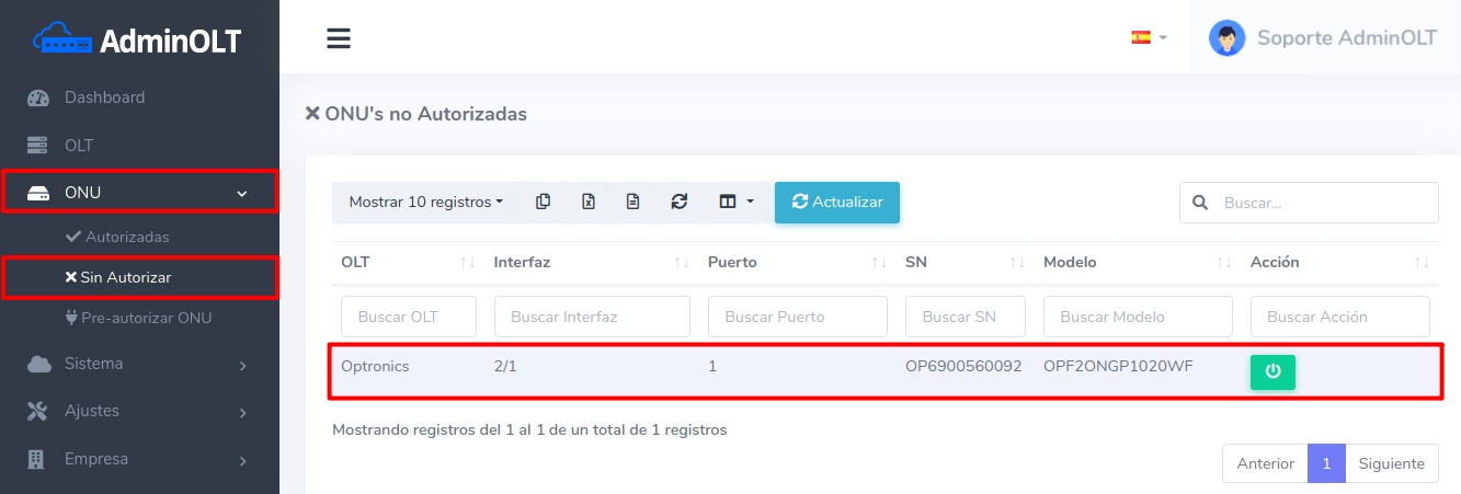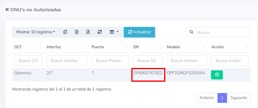 Editar ONU Optronics por Numero de Serie (SN)