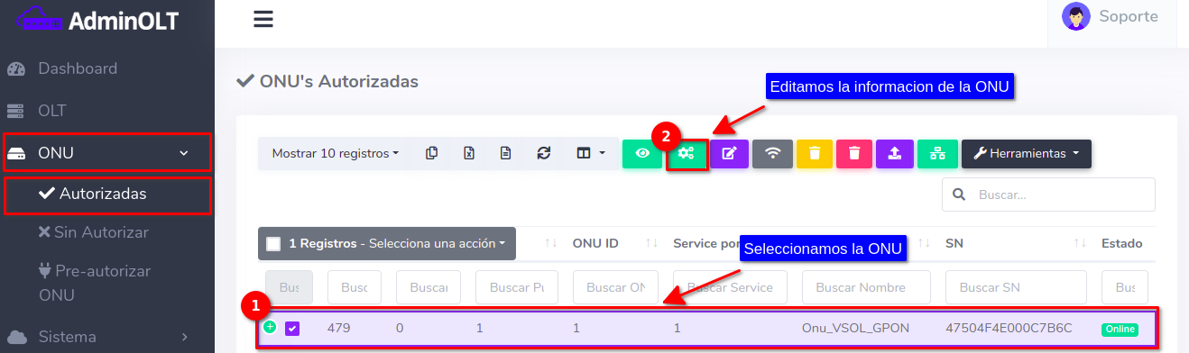Pasos para editar información de ONU Autorizada por SN