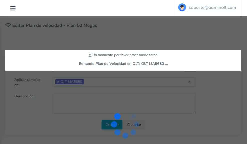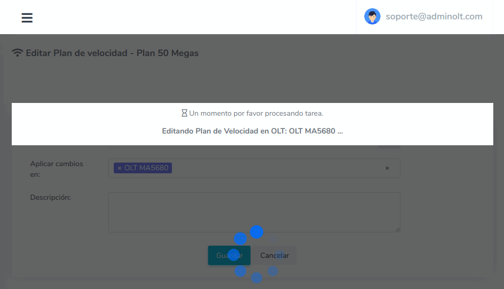 4 Esperamos mientras AdminOLT se conecta con la OLT y hace los cambios.
