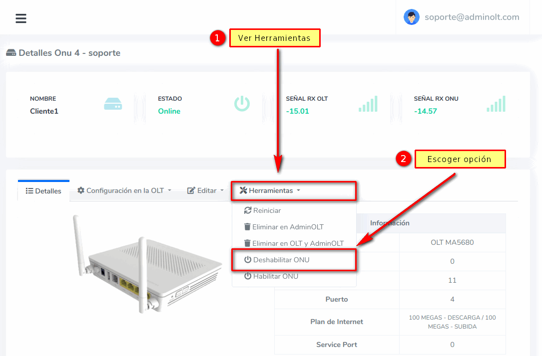 Habilitar/Deshabilitar ONU