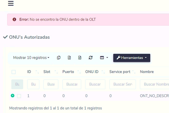1.- Eliminar la onu de AdminOLT: Esta acción eliminar la onu de AdminOLT que causa conflictos.