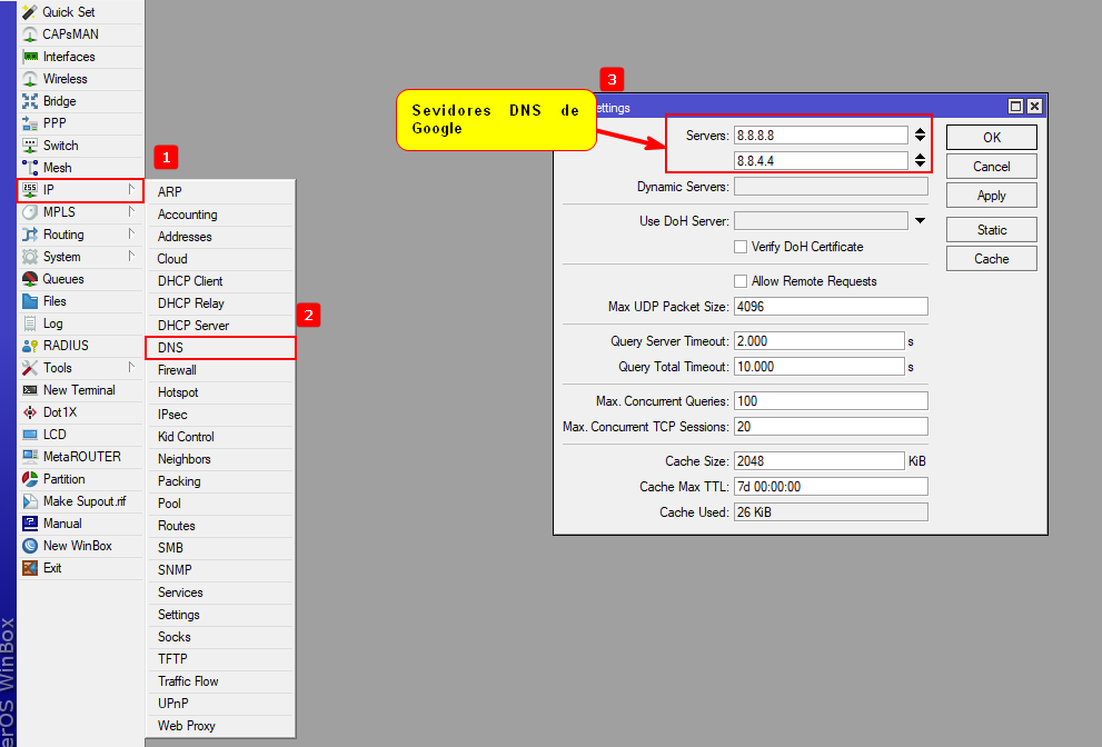 Si el router no cuenta con servidores DNS definidos no podrá conectarse por medio de la VPN ya que el túnel PPP requiere que el mikrotik pueda resolver el dominio de nuestro servidor VPN.