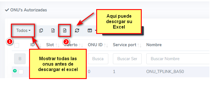 En AdminOLT se cuenta con el apartado de “Exportar ONU´s a la OLT” donde se enlistan las onus que no se encuentran en la OLT, solo en el sistema; así se agregarán las onus y tendrán el servicio.