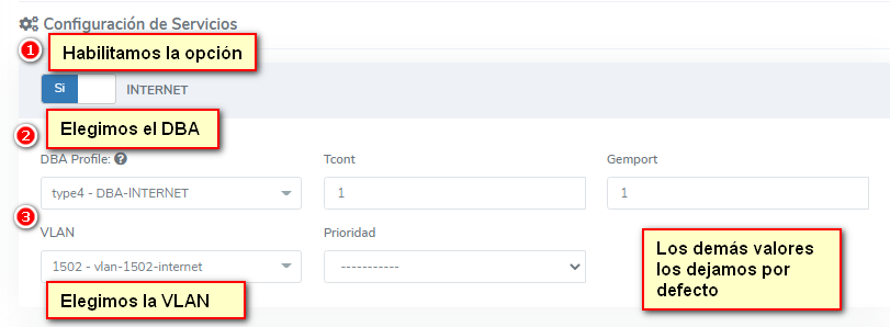 Para la configuración del triple play necesitamos unas cofiguraciones previas que son la creacion de las vlans, creas dba's en nuestra OLT y crear un Service Profile